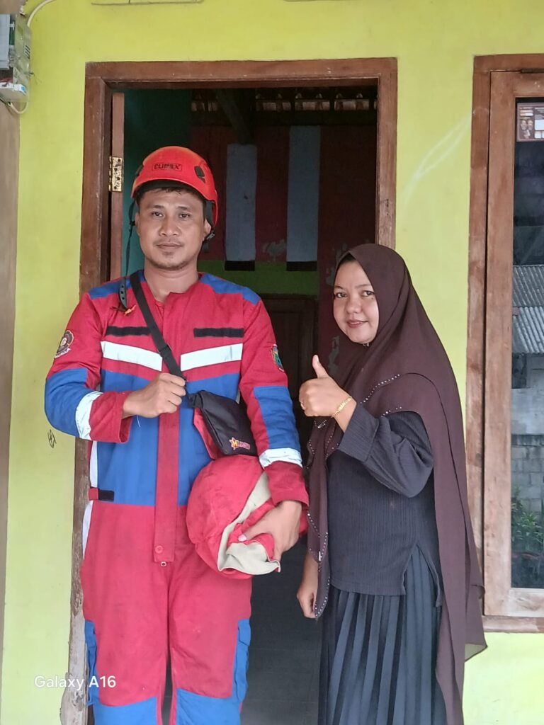 ANGGOTA DAMKAR EVAKUASI SARANG LEBAH MADU DI RUMAH WARGA DESA SERDANG