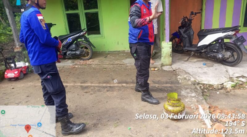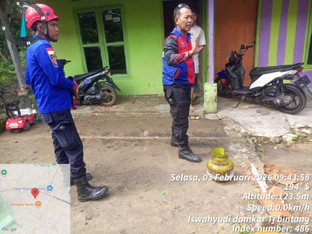 Anggota Dinas Pemadam Kebakaran dan Penyelamatan Kabupaten Lampung Selatan Posko Tanjung Bintang telah selesai melaksanakan evakuasi tabung gas elpigi bocor di rumah warga Desa Jati Baru Kecamatan Tanjung Bintang Kabupaten Lampung Selatan, Selasa (3-2-2026).