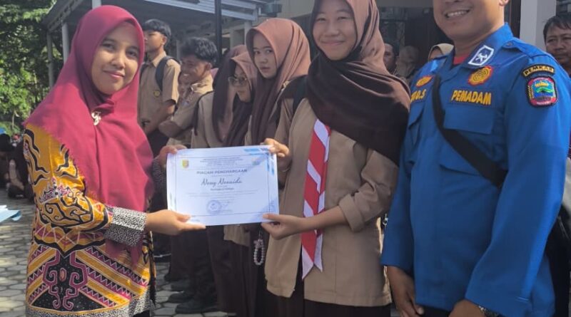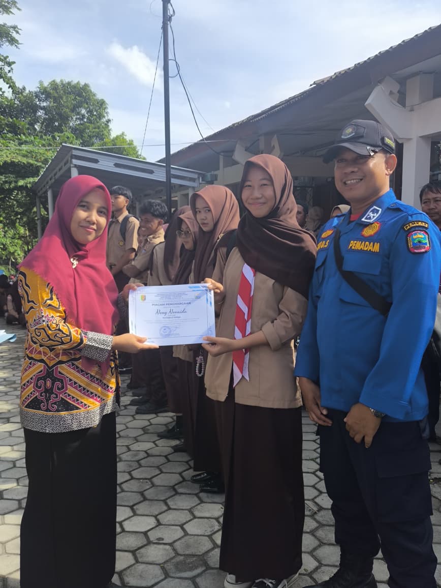 Anggota Tim Damkar Lampung Selatan melaksanakan kegiatan pengambilan raport siswi kelas X SMA Negeri 1 Ketapang, Jumat (19-12-2025).