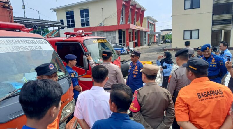 Anggota Dinas Pemadam Kebakaran dan Penyelamatan Kabupaten Lampung Selatan menghadiri Apel Kesiapan Tanggap Darurat Bencana Hidrometeorologi Tahun 2025 di Lapangan Polres Lampung Selatan, Rabu (5-11-2025), Kegiatan ini untuk mengantisipasi meningkatnya resiko bencana akibat puncak musim hujan di Lampung Selatan.