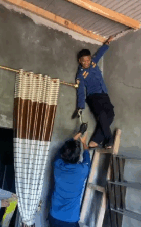 ULAR SANCA YANG MASUK RUMAH WARGA RAGOM MUFAKAT 2 BERHASIL DIEVAKUASI DAMKAR LAMPUNG SELATAN