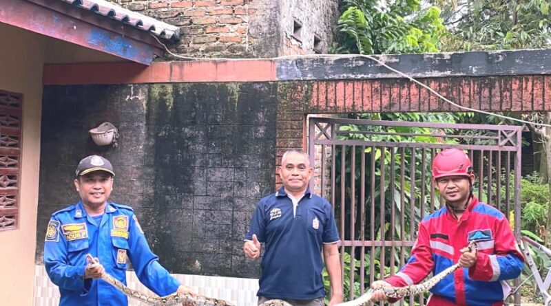 ULAR SANCA BERADA DI DALAM GUDANG RUMAH WARGA JATI MULYO BERHASIL DIEVAKUASI DAMKAR LAMPUNG SELATAN