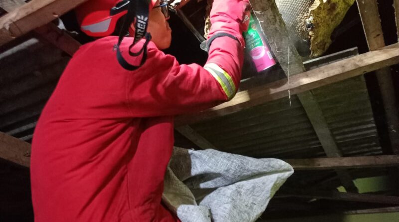 DAMKAR LAMPUNG SELATAN EVAKUASI KUCING LIAR YANG MELAHIRKAN DI ATAS PLAFON RUMAH WARGA HAJIMENA