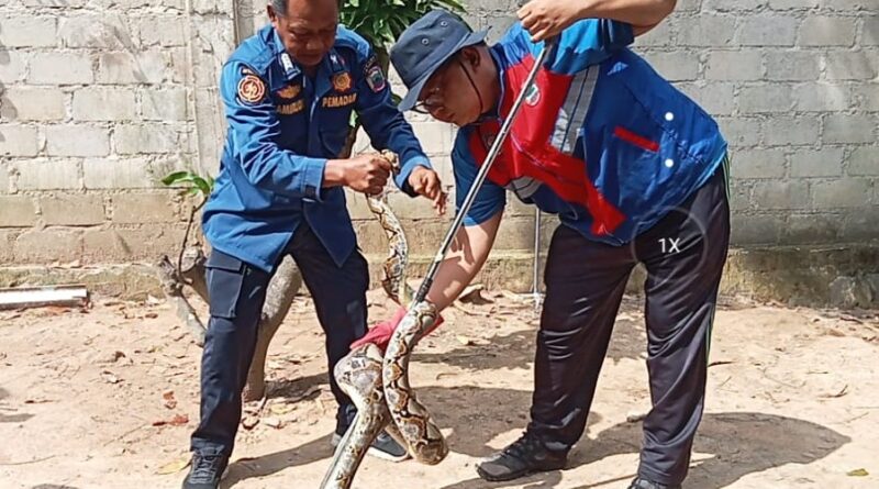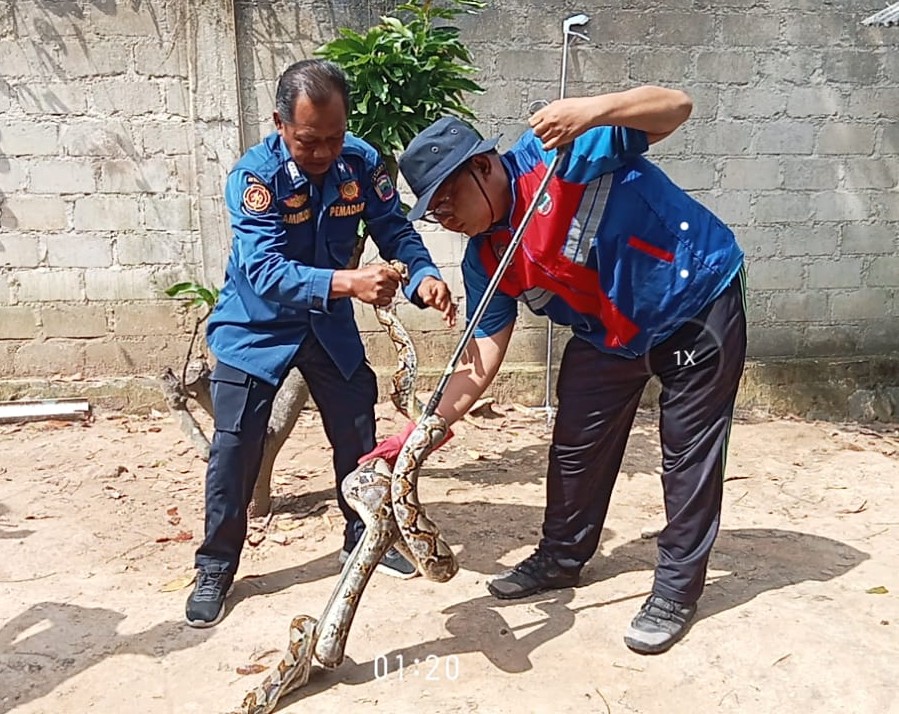 Anggota Dinas Pemadam Kebakaran dan Penyelamatan Kabupaten Lampung Selatan posko Tanjung Bintang telah melaksanakan evakuasi Ular Sanca di Desa Serdang Kecamatan Tanjung Bintang Kabupaten Lampung Selatan pada Minggu (14-9-2025).