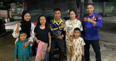 Setelah melakukan evakuasi lansia yang terdampak banjir di lokasi Desa Fajar Baru tim Rescue Damkarmat Posko Jati Agung Kembali berjaga di lokasi banjir untuk memberikan pertolongan kepada warga yang membutuhkan. (HAY)