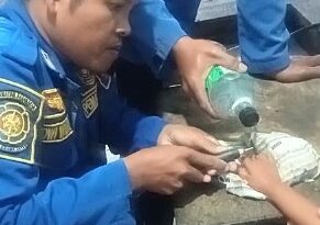 DAMKARMAT LAMPUNG SELATAN MELAKUKAN PENCARIAN SEORANG REMAJA TENGGELAM DI SUNGAI