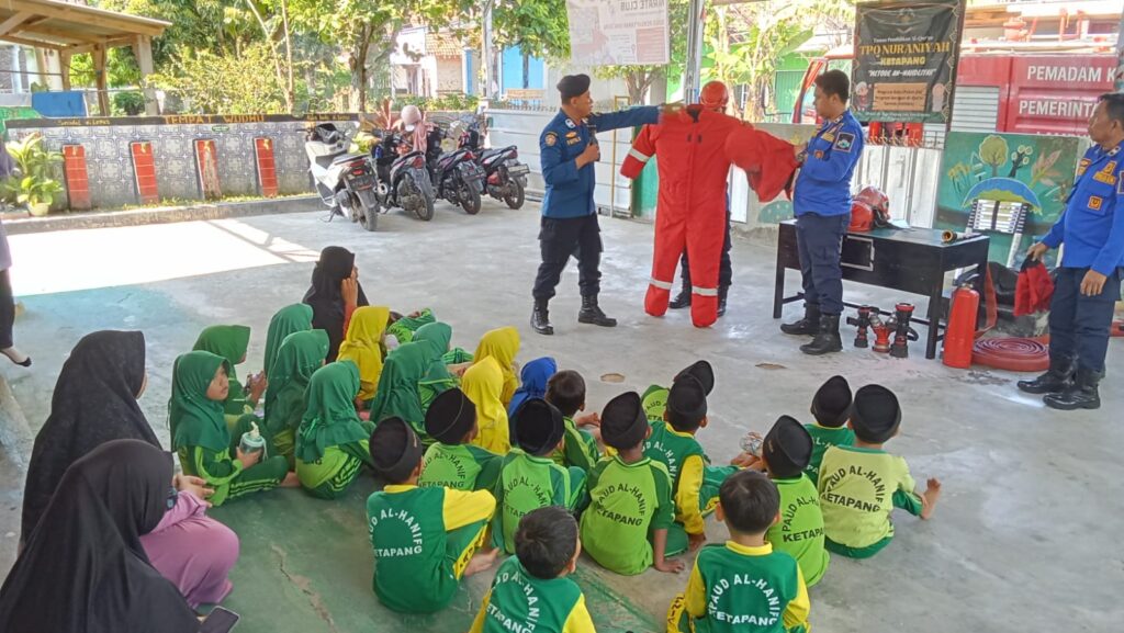 Pada Kesempatan ini, Dinas Pemadam Kebakaran dan Penyelamatan memberikan Pengenalan soal Pemadam Kebakaran, sekaligus simulasi penanganan kebakaran kepada anak-anak TK Al Hanif Kecamatan Ketapang sehingga dapat memahami bahaya kebakaran sedari dini. Sekaligus upaya simulasi ini agar dapat terhindari dari bahaya kebakaran.
