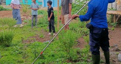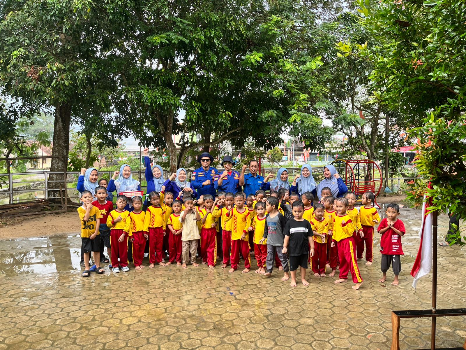 Dinas Pemadam Kebakaran dan Penyelamatan Kabupaten Lampung Selatan posko Tanjung Bintang melaksanakan kegiatan Edukasi dan Sosialisasi sekaligus penyiraman kepada Dewan Guru dan Murid-murid TK Bintang Sakti, Kecamatan Tanjung Bintang, Kabupaten Lampung Selatan, Senin (1-9-2025).