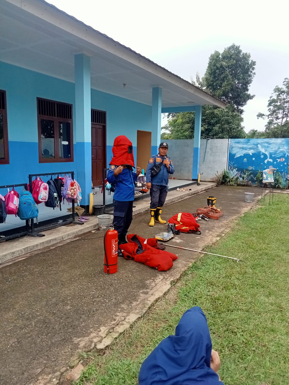 EDUKASI PENGENALAN PERALATAN PEMADAM KEBAKARAN DAN MANDI BERSAMA DI PAUD SPS KASIH IBU KECAMATAN NATAR