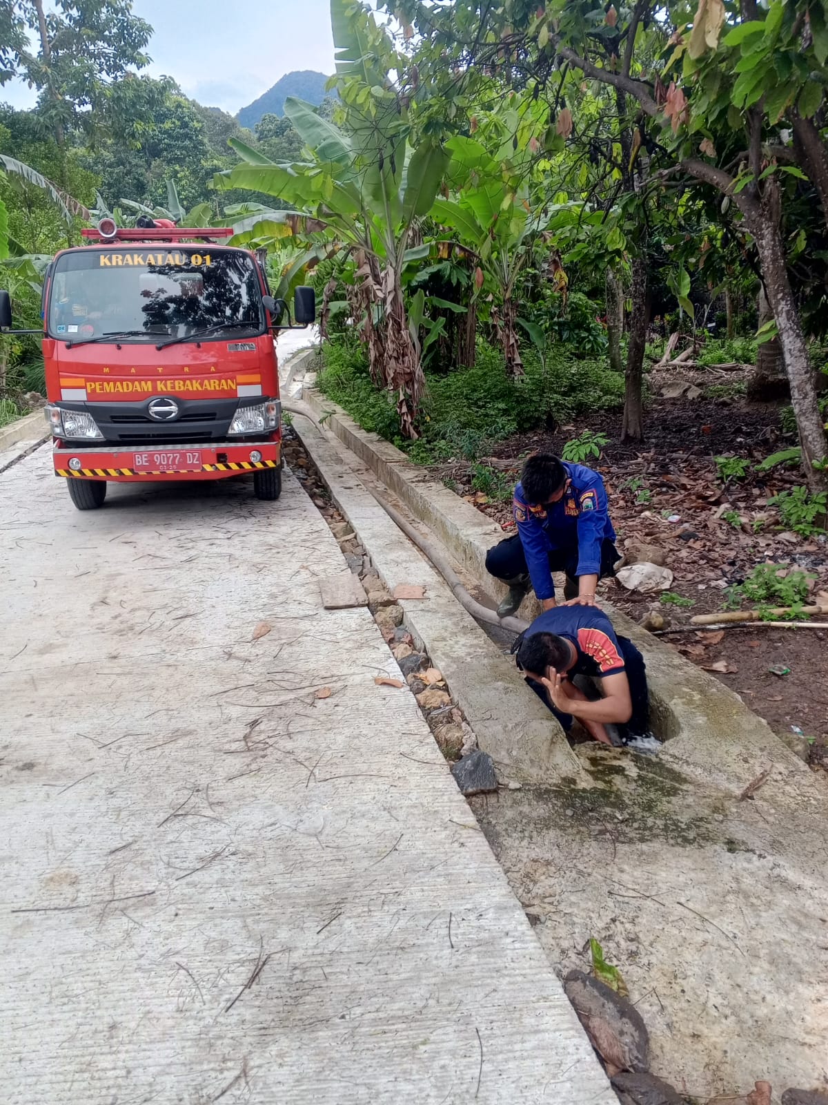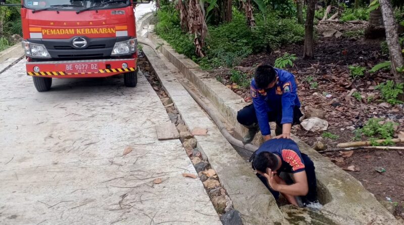 Anggota Dinas Pemadam Kebakaran dan Penyelamatan Kabupaten Lampung Selatan Posko Kalianda telah melaksanakan evakuasi bangkai anjinh liar di dalam got perumahan Kelurahan Bumi Agung pada hari Senin (12-1-2026).