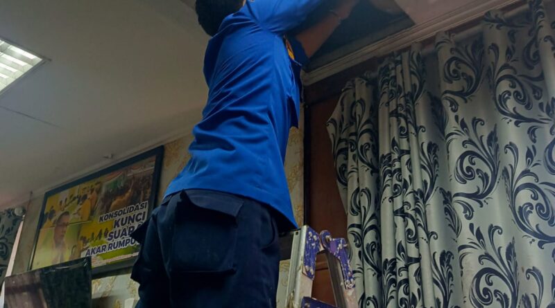 EVAKUASI BANGKAI TIKUS DI ATAS PLAFON KANTOR DPRD LAMPUNG SELATAN