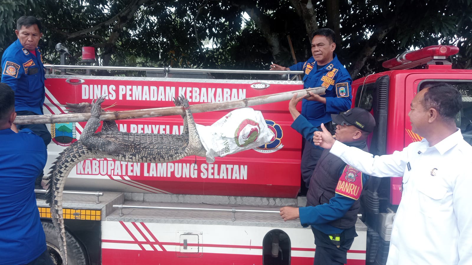 Tim Rescue Dinas Pemadam Kebakaran Dan Penyelamatan Kabupaten Lampung Selatan Posko Ketapang telah melasanakan evakuasi seekor Buaya yang masuk jaring milik warga di Desa Bandar Agung Kecamatan Sragi Kabupaten Lampung Selatan, Rabu (11-2-2026).