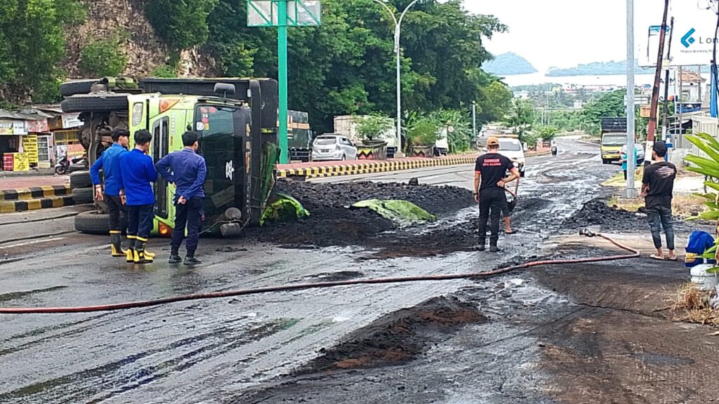 Anggota Dinas Pemadam Kebakaran Dan Penyelamatan Kabupaten Lampung Selatan Posko Kalianda telah melaksanakan evakuasi debu batu bara di jalan trans sumatera simpang lintas timur bakauheni yang mengakibatkan dampaknya pada rumah makan dan warung di sekitar berdebu dan hitam, berbahaya untuk masyarakat sekitar yang berlalu lalang yang akan mengakibatkan batuk dan sesak pada hari Kamis (17-7-2025).