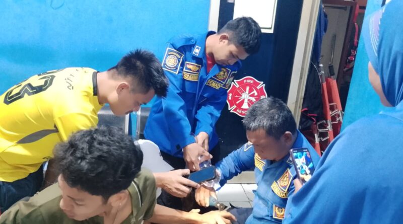 Tim Rescue Dinas Pemadam Kebakaran dan Penyelamatan Kabupaten Lampung Selatan Posko Kalianda mendapat kunjungan dari Bapak rizki Fadilah yang diantar oleh kerabatnya meminta tolong kepada anggota Damkar agar dapat melepas cincin di jari manisnya karena keadaan jari sudah membengkak dan cincin tidak dapat dikeluarkan.