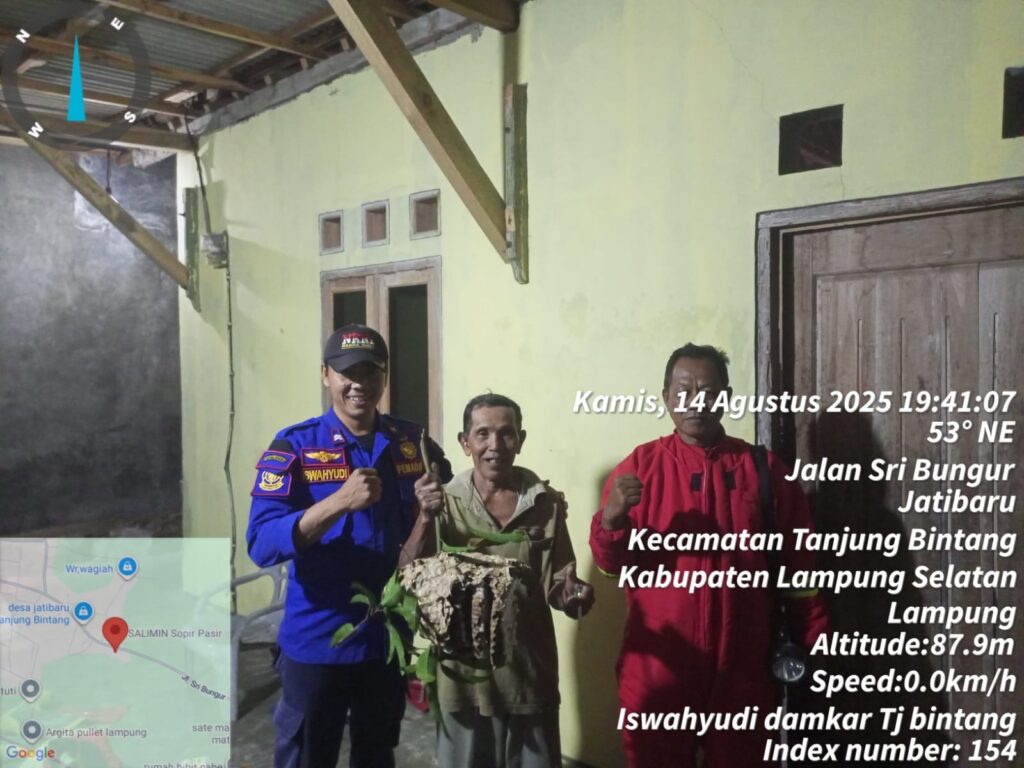Anggota Damkar Posko Tanjung Bintang mendapat laporan dari Bapak Candra selaku pemilik rumah yang menghubungi Call Center Damkar pada pukul 15.05 WIB karena di rumahnya yang beralamat Desa Jati Baru Kecamatan Tanjung Bintang ada ada sarang tawon vespa.