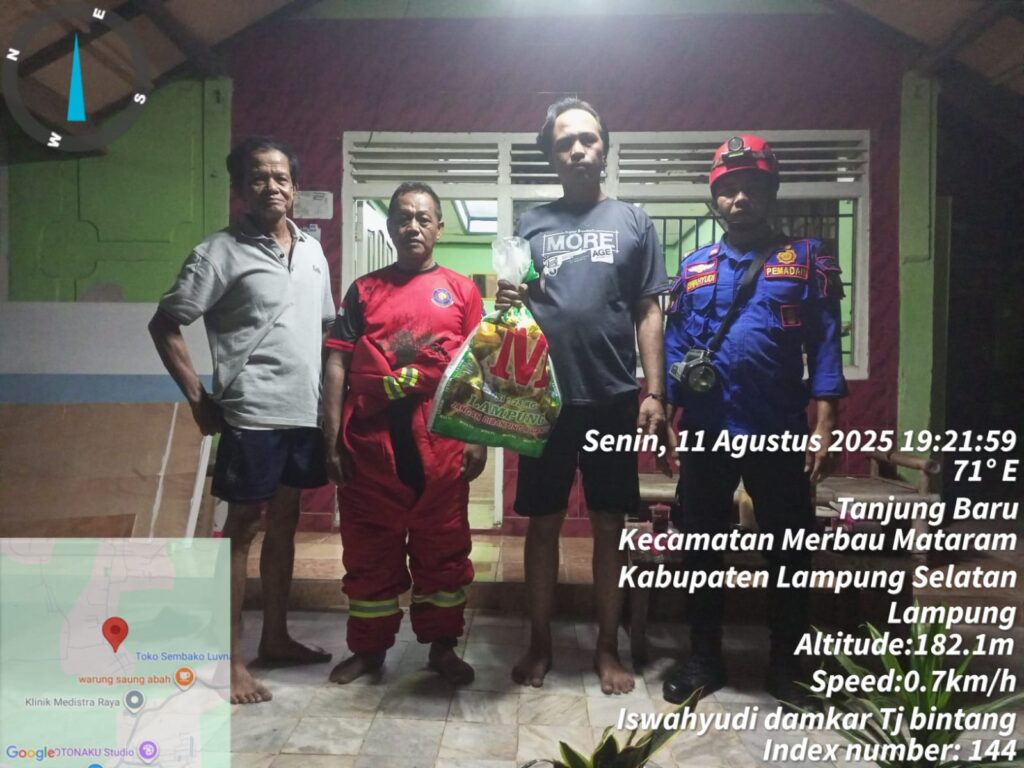 Anggota Damkar Posko Tanjung Bintang mendapat laporan dari Bapak Suparno yang menghubungi Call Center Damkar pada pukul 11.25 WIB bahwa di rumah miliknya di Dusun Waylaga Desa Tanjung Baru Kecamatan Merbau Mataram terdapat sarang tawon Vespa dan meminta bantuan untuk di evakuasi, Senin (11-8-2025).