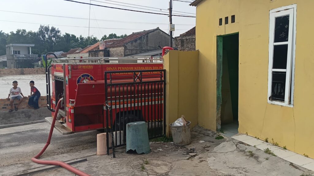 Anggota Dinas Pemadam Kebakaran dan Penyelamatan Kabupaten Lampung Selatan Mako Kalianda telah melaksanakan penyiraman WC yang mampet di Kelurahan Way Urang Kecamatan Kalianda pada Senin (6-10-2025).