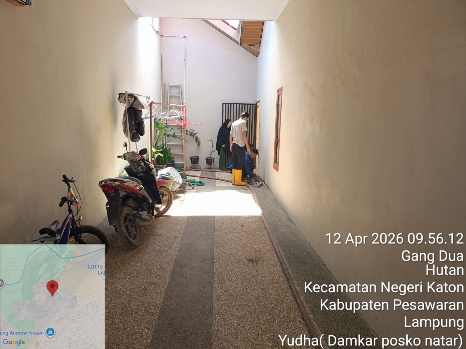Tim Rescue Dinas Pemadam Kebakaran dan Penyelamatan Kabupaten Lampung Selatan Posko Natar mendapatkan laporan dari Ibu Damsi Nofianti sekira pukul 08.00 WIB bahwa ada saluran pembuangan air di rumahnya yang tersumbat yang berlokasi di Desa Hajimena.