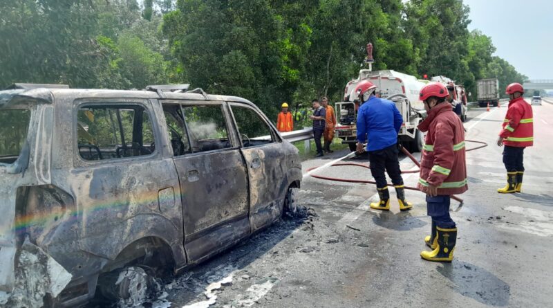 Anggota Dinas Pemadam Kebakaran dan Penyelamatan Kabupaten Lampung Selatan Posko Tanjung Bintang telah memadamkan kebakaran 1 unit mobil minibus Suzuki APV di Ruas Tol Bakter KM 56 pada hari Sabtu (11-10-2025).