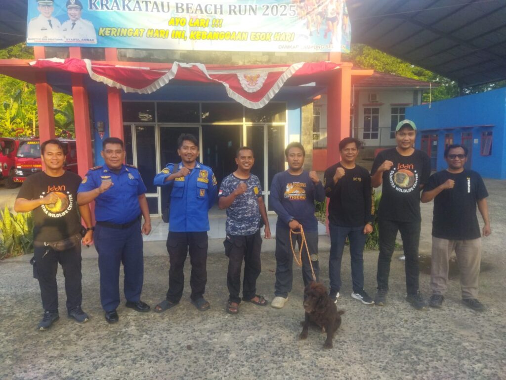 Anggota Dinas Pemadam Kebakaran dan Penyelamatan Kabupaten Lampung Selatan Posko Kalianda melaksanakan kegiatan Pelatihan Anjing Pelacak K9 bersama Jaringan Satwa Indonesia-JAAN Di Halaman Kantor Area Parkir Damkar Lampung Selatan pada Selasa (2-9-2025).