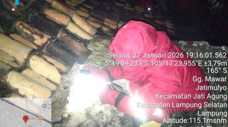 Anggota Dinas Pemadam Kebakaran dan Penyelamatan Kabupaten Lampung Selatan Posko Jati Agung telah selesai melaksanakan evakuasi sarang tawon gung yang berada di atap rumah warga Desa Jatimulyo Kecamatan Jati Agung Kabupaten Lampung Selatan, Selasa (27-1-2026).