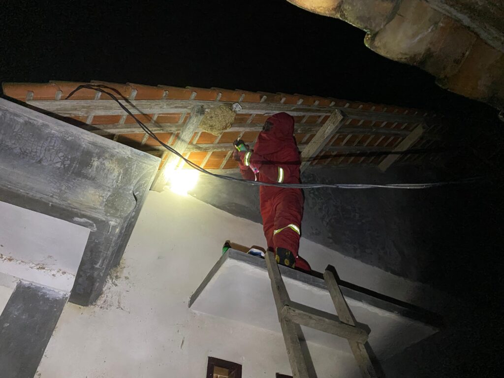 Tim Damkar Posko Kalianda yang mendapatkan laporan tersebut sekira pukul 19.30 WIB meluncur ke lokasi untuk mengevakuasi sarang tawon vespa tersebut menggunakan APD lengkap dengan membawa 1 unit mobil ranpur. Evakuasi dilakukan malam hari karena tawon pada malam hari cenderung tidak agresif agar lebih aman dan kondusif.