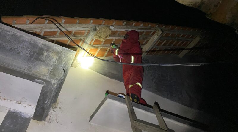 SARANG TAWON VESPA YANG MERESAHKAN WARGA BANDAN HURIP BERHASIL DI EVAKUASI ANGGOTA DAMKAR LAMPUNG SELATAN