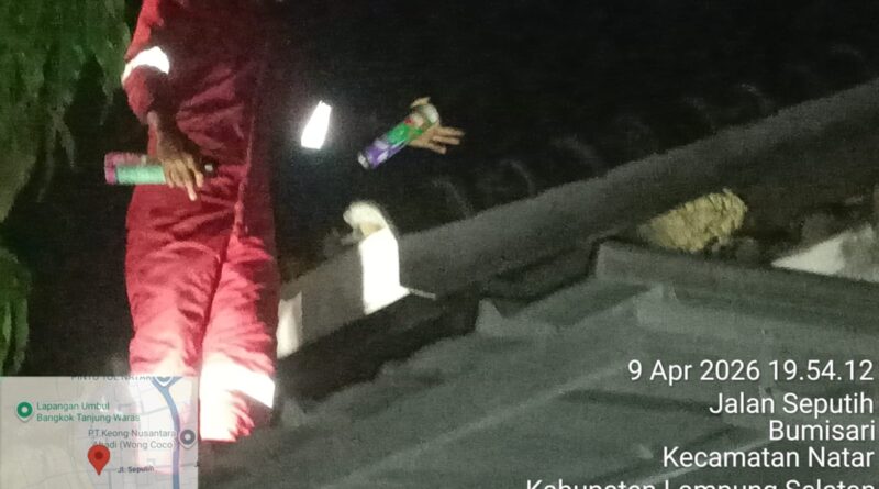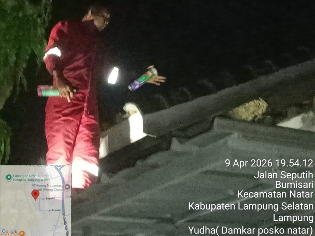 Tim Rescue Dinas Pemadam Kebakaran dan Penyelamatan Kabupaten Lampung Selatan Posko Natar mendapat laporan dari Bapak Rohman sekira pukul 18.50 WIB yang menghubungi Damkar Lampung Selatan posko Natar bahwa ada sarang tawon Vespa yang menempel di atap rumahnya yang berlokasi di Jalan Seputih I Desa Bumisari Kecamatan Natar Kabupaten Lampung Selatan yang keberadaannya membahayakan penghuni dan masyarakat sekitar.