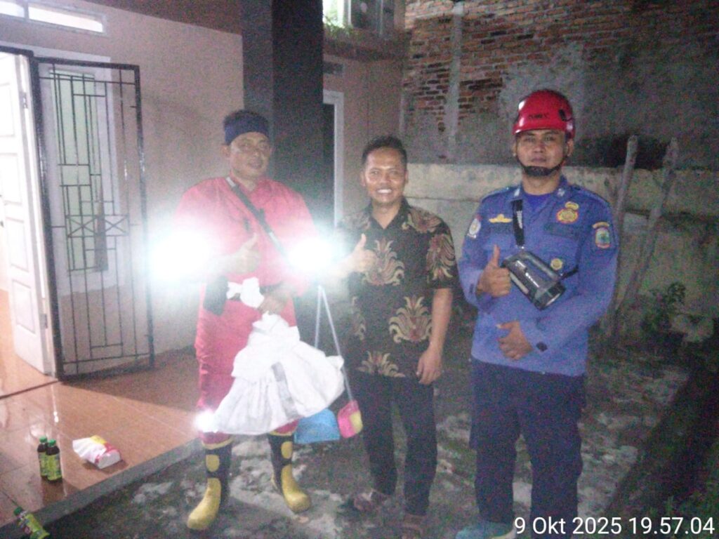 Anggota Dinas Pemadam Kebakaran dan Penyelamatan Kabupaten Lampung Selatan posko Natar telah selesai melaksanakan evakuasi sarang tawon vespa yang menempel di atap rumah warga Desa Hajimena Kecamatan Natar Kabupaten Lampung Selatan, Kamis (09-10-2025).