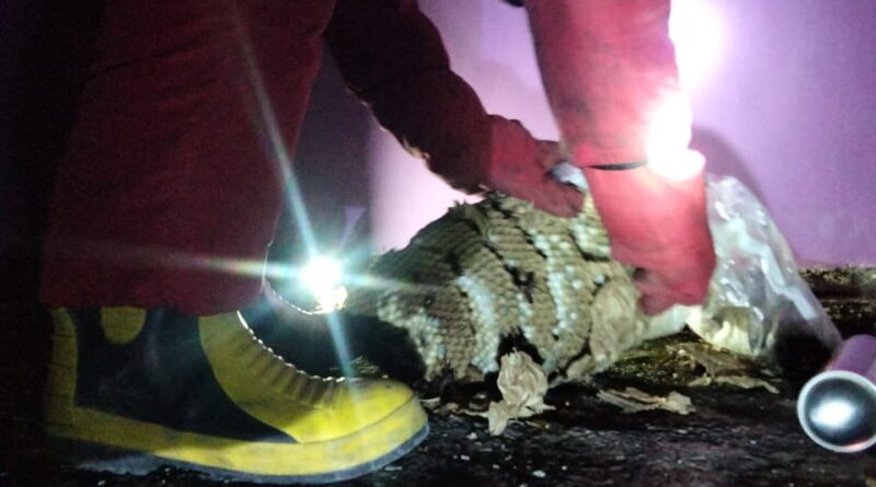 Tim Damkar Posko Jati Agung yang mendapatkan laporan tersebut sekira pukul 19.00 WIB meluncur ke lokasi untuk mengevakuasi sarang tawon Vespa tersebut menggunakan APD lengkap dengan membawa 1 unit mobil ranpur, evakuasi langsung dilakukan pada malam hari agar lebih kondusif dan terkendali.