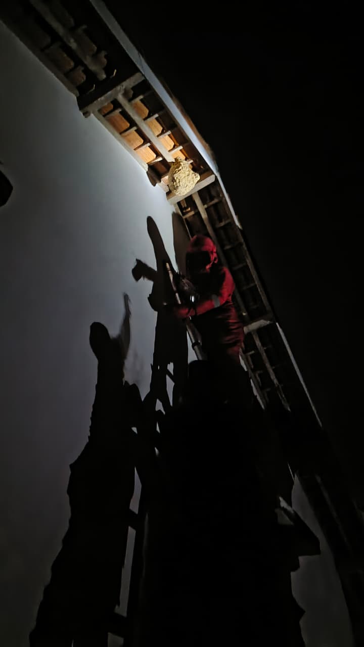 Tim Rescue Dinas Pemadam Kebakaran dan Penyelamatan Kabupaten Lampung Selatan Posko Ketapang mendapat laporan dari Bapak Firdaus sekira pukul 07.17 WIB yang menghubungi Damkar Lampung Selatan posko Ketapang bahwa ada sarang tawon Vespa yang menempel di atap rumahnya yang berlokasi di Desa Karang Sari Kecamatan Ketapang Kabupaten Lampung Selatan yang keberadaannya membahayakan penghuni dan masyarakat sekitar.