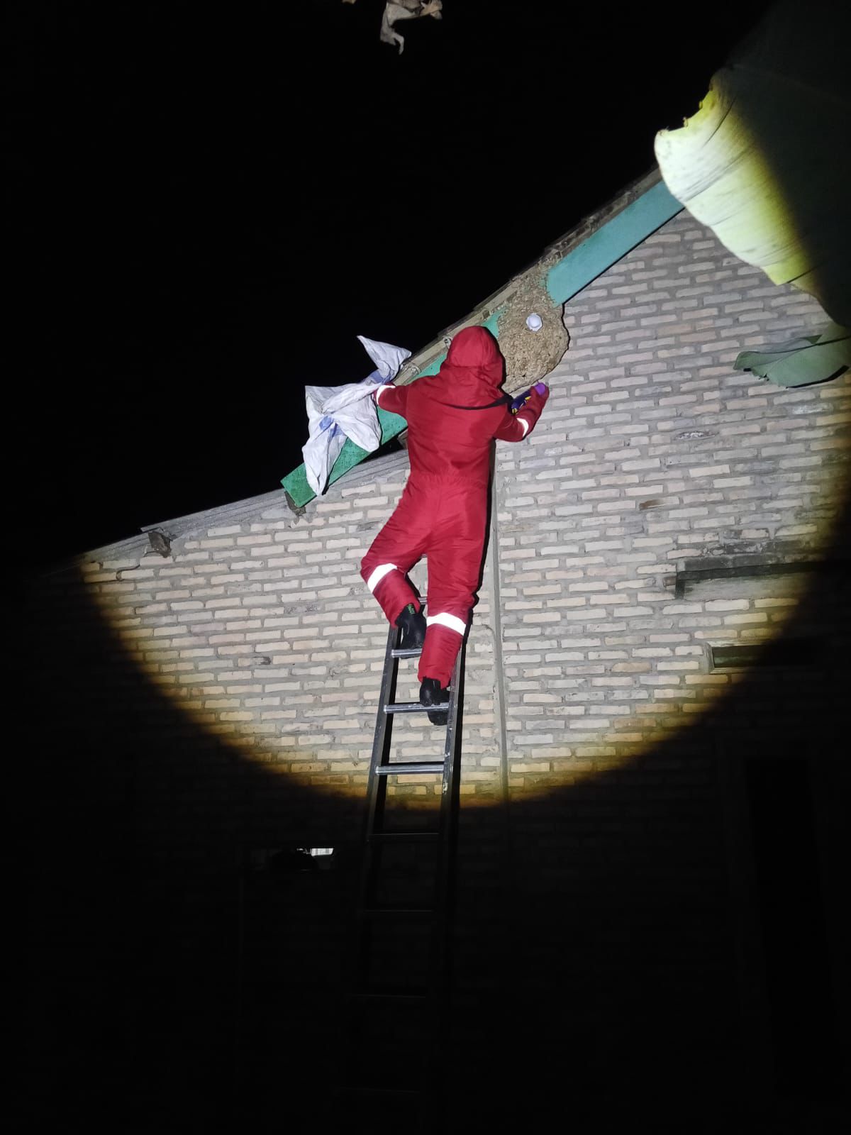 Tim Rescue Dinas Pemadam Kebakaran dan Penyelamatan Kabupaten Lampung Selatan Posko Ketapang mendapat laporan dari Bapak Amin sekira pukul 15.00 WIB yang menghubungi Damkar Lampung Selatan posko Ketapang bahwa ada sarang tawon Vespa yang menempel di atap rumahnya yang berlokasi di Dusun Kedaung Timur Desa Kedaung Kecamatan Sragi Kabupaten Lampung Selatan yang keberadaannya membahayakan penghuni dan masyarakat sekitar.