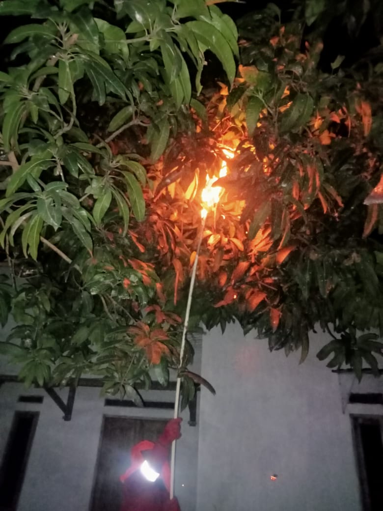 Anggota piket Dinas Pemadam Kebakaran dan Penyelamatan Kabupaten Lampung Selatan Posko Natar mendapat laporan dari Bapak Wahyudi selaku pemilik rumah yang menghubungi Damkar Lampung Selatan posko Natar sekira pukul 11.00 WIB bahwa ada sarang tawon Vespa yang menempel di pohon kebun rumahnya yang berlokasi di Dusun Muara Putih Desa Muara Putih Kecamatan Natar Kabupaten Lampung Selatan yang keberadaannya membahayakan penghuni rumah dan masyarakat sekitar.