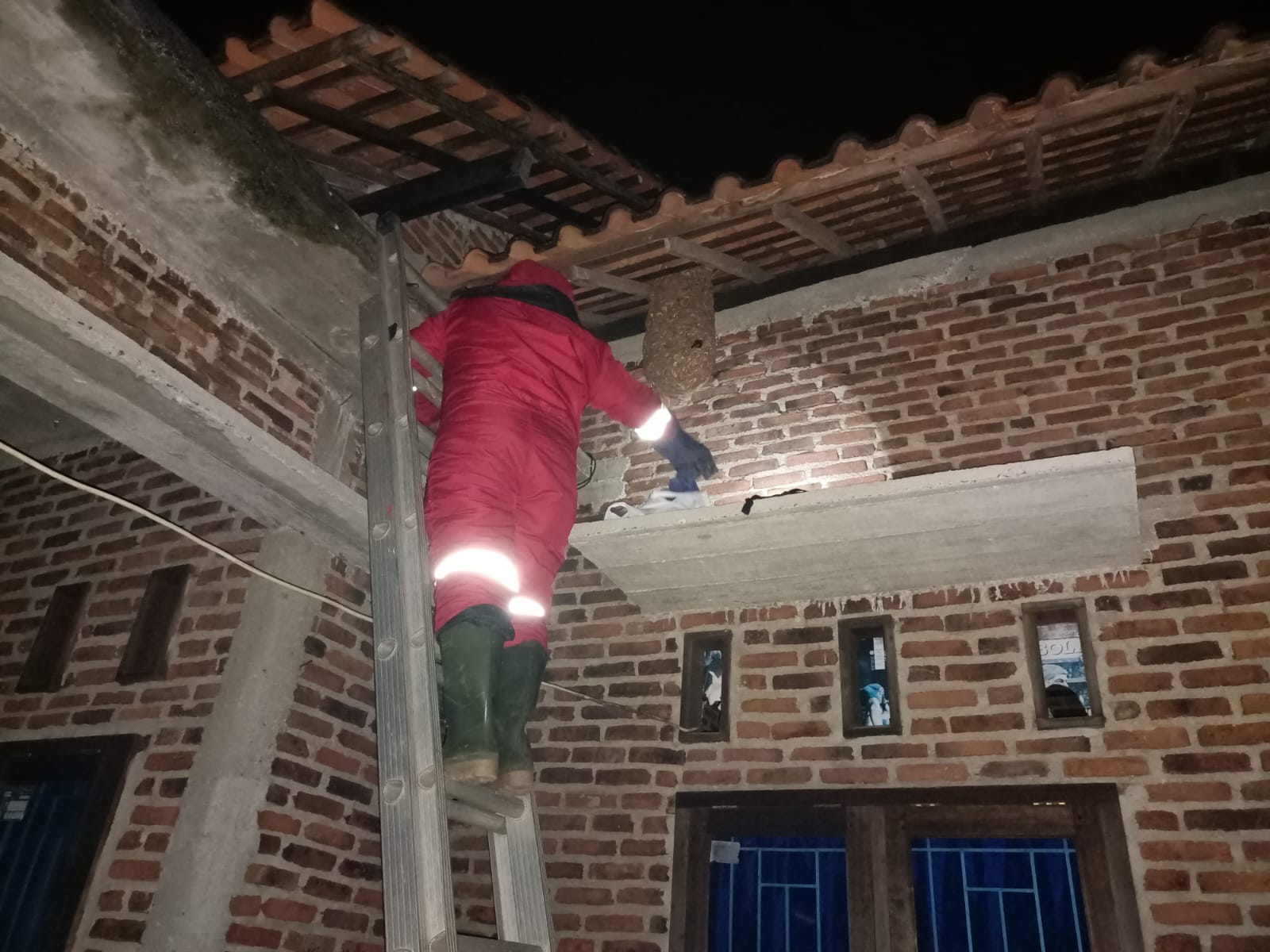 Tim Damkar posko Natar yang mendapatkan laporan tersebut pada malam hari sekira pukul 19.00 WIB meluncur ke lokasi untuk mengevakuasi sarang tawon Vespa tersebut menggunakan APD lengkap dengan membawa 1 unit mobil ranpur, Evakuasi dilakukan pada malam hari agar lebih kondusif dan terkendali.