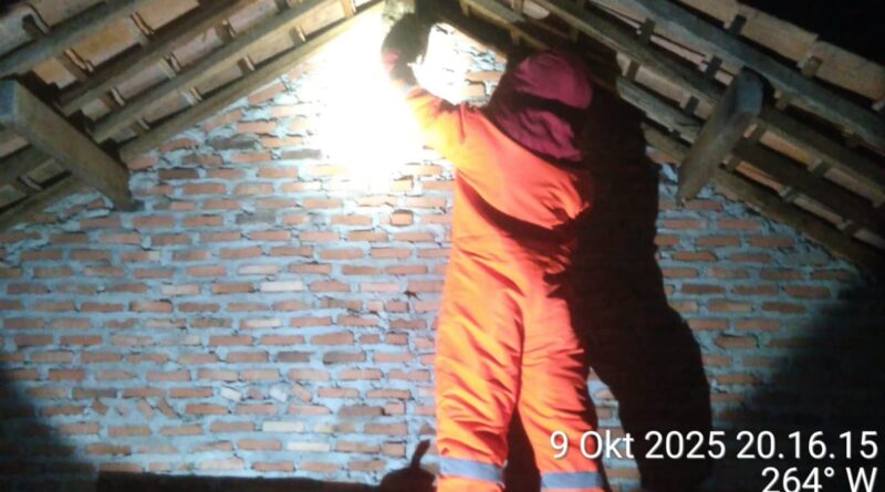 Anggota Dinas Pemadam Kebakaran dan Penyelamatan Kabupaten Lampung Selatan posko Tanjung Bintang telah selesai melaksanakan evakuasi sarang tawon vespa yang menempel di atap rumah warga Desa Way Galih Kecamatan Tanjung Bintang Kabupaten Lampung Selatan, Kamis (09-10-2025).