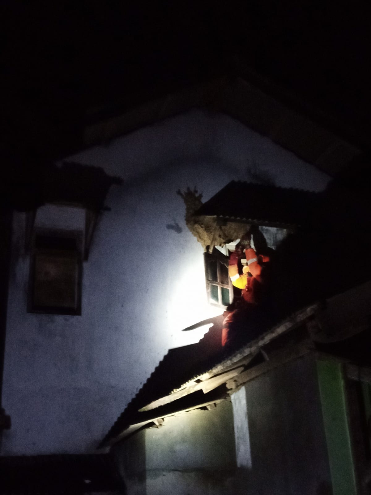 Anggota Dinas Pemadam Kebakaran dan Penyelamatan Kabupaten Lampung Selatan Posko Kalianda telah selesai melaksanakan evakuasi sarang tawon Vespa yang menempel di atap rumah warga Kelurahan Way Urang Kecamatan Kalianda Kabupaten Lampung Selatan, Kamis (8-1-2026).