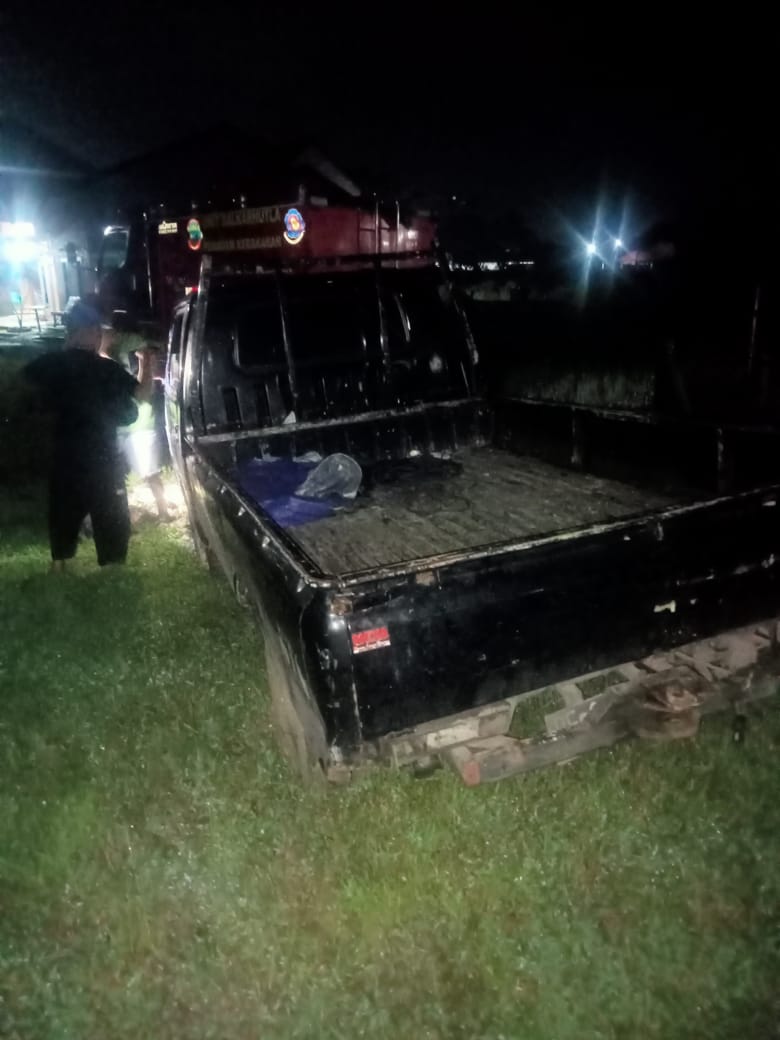 TIM RESCUE DAMKAR LAMPUNG SELATAN EVAKUASI MOBIL L 300 YANG TERPEROSOK DI SAWAH