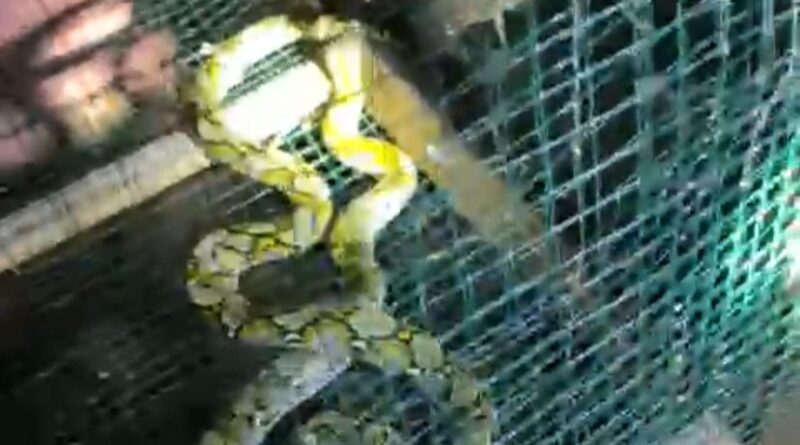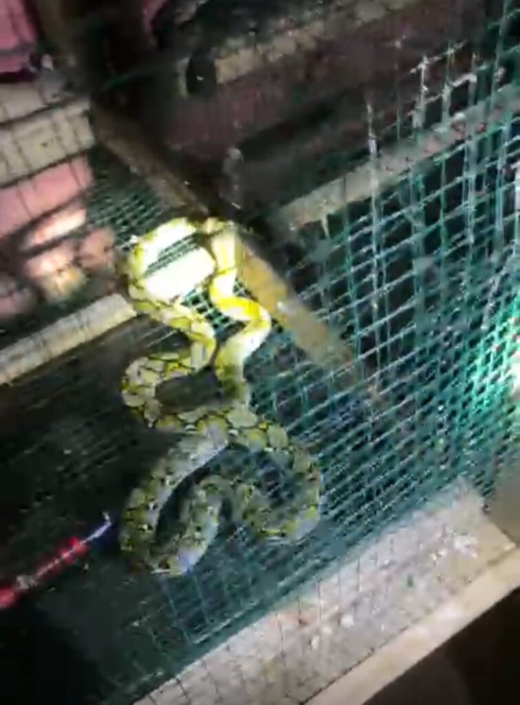 ULAR SANCA BERADA DI PAGAR RUMAH WARGA BUMI AGUNG BERHASIL DIEVAKUASI DAMKAR LAMPUNG SELATAN