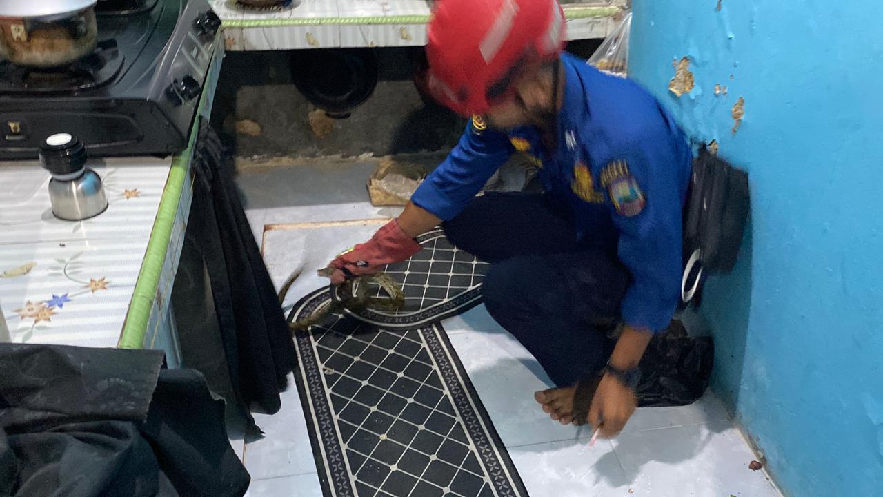 ULAR SANCA DI PERUMAHAN SERAMBI SUMATERA BERHASIL DIEVAKUASI DAMKAR LAMPUNG SELATAN