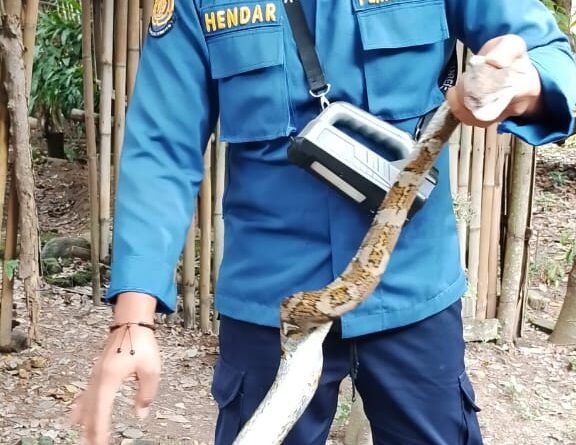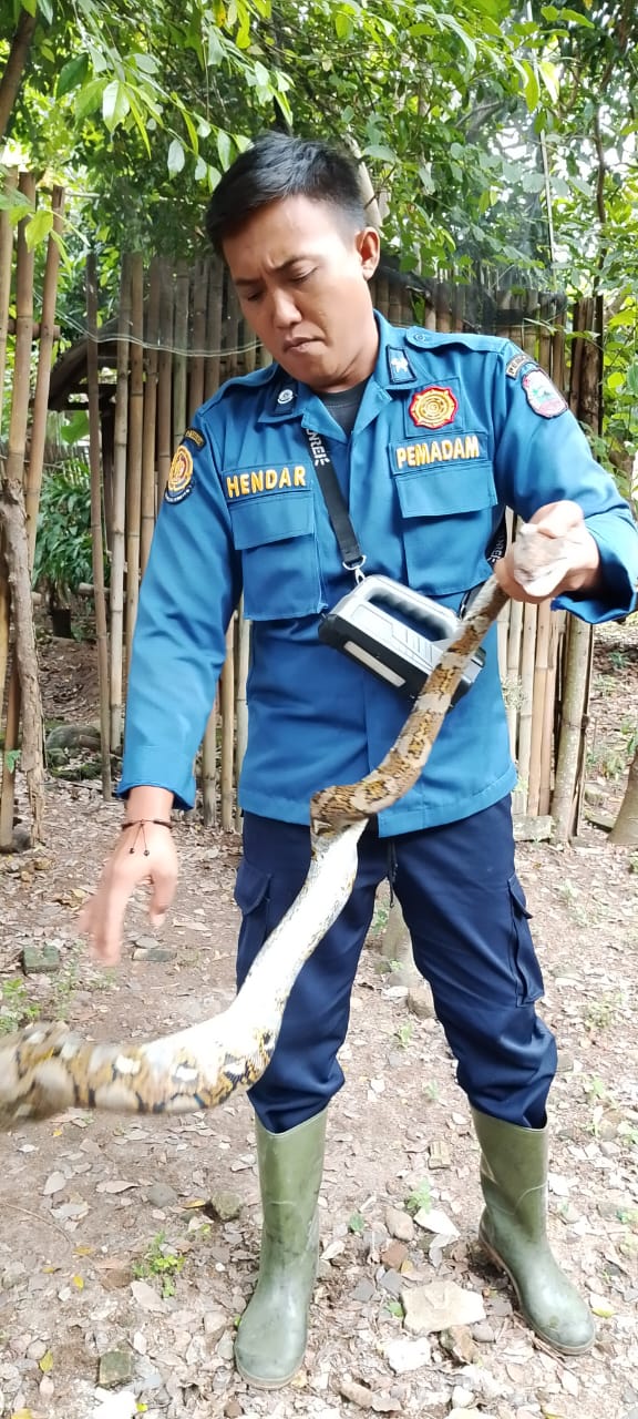 ULAR SANCA PANJANG 2,5 METER DI WAY URANG BERHASIL DIEVAKUASI DAMKAR LAMPUNG SELATAN