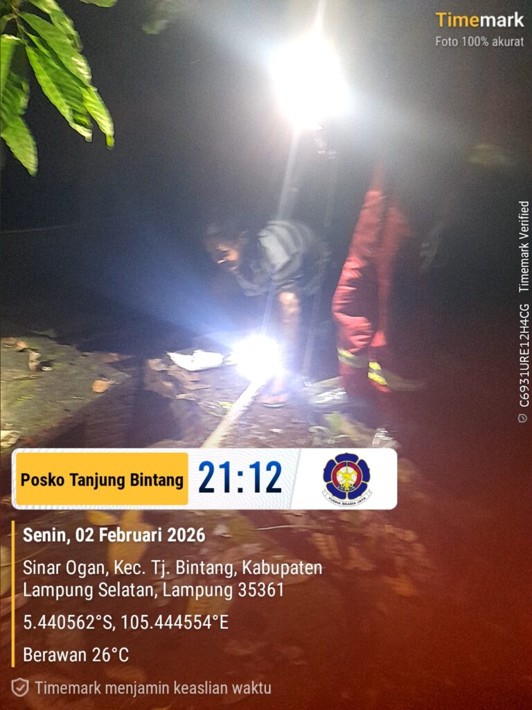 Anggota Dinas Pemadam Kebakaran dan Penyelamatan Kabupaten Lampung Selatan Posko Tanjung Bintang telah melaksanakan evakuasi Ular Sanca yang berada di dalam rumah warga Desa Sinar Ogan Kecamatan Tanjung Bintang Kabupaten Lampung Selatan pada hari Senin (2-2-2026).