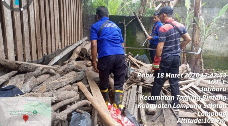 Tim Rescue Dinas Pemadam Kebakaran dan Penyelamatan Kabupaten Lampung Selatan Posko Tanjung Bintang telah melaksanakan evakuasi Ular Sanca yang berada di halaman belakang rumah warga Desa Jati Indah Kecamatan Tanjung Bintang Kabupaten Lampung Selatan pada hari Rabu (18-3-2026).