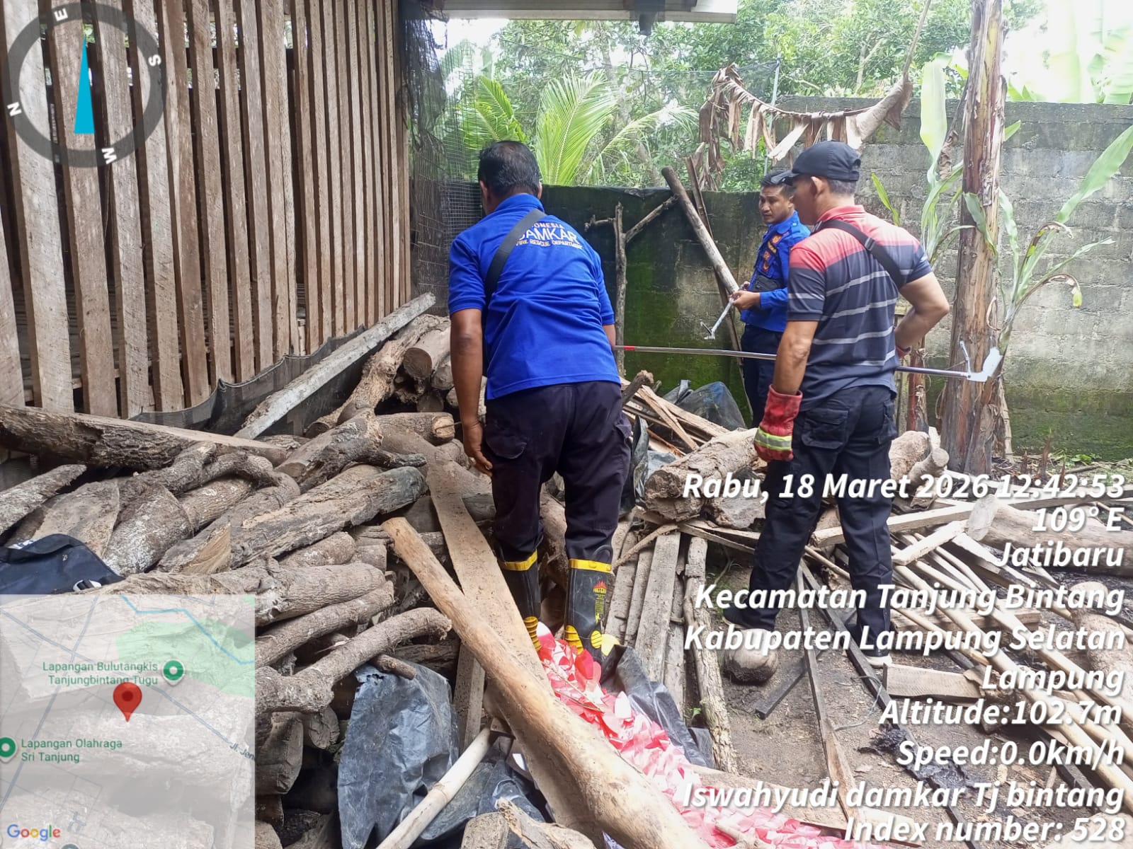 Tim Rescue Dinas Pemadam Kebakaran dan Penyelamatan Kabupaten Lampung Selatan Posko Tanjung Bintang mendapat laporan dari Bapak Dedi sekira pukul 11.50 WIB bahwa ada ular di halaman belakang rumahnya yang berlokasi di Desa Jati Indah Kecamatan Tanjung Bintang Kabupaten Lampung Selatan.